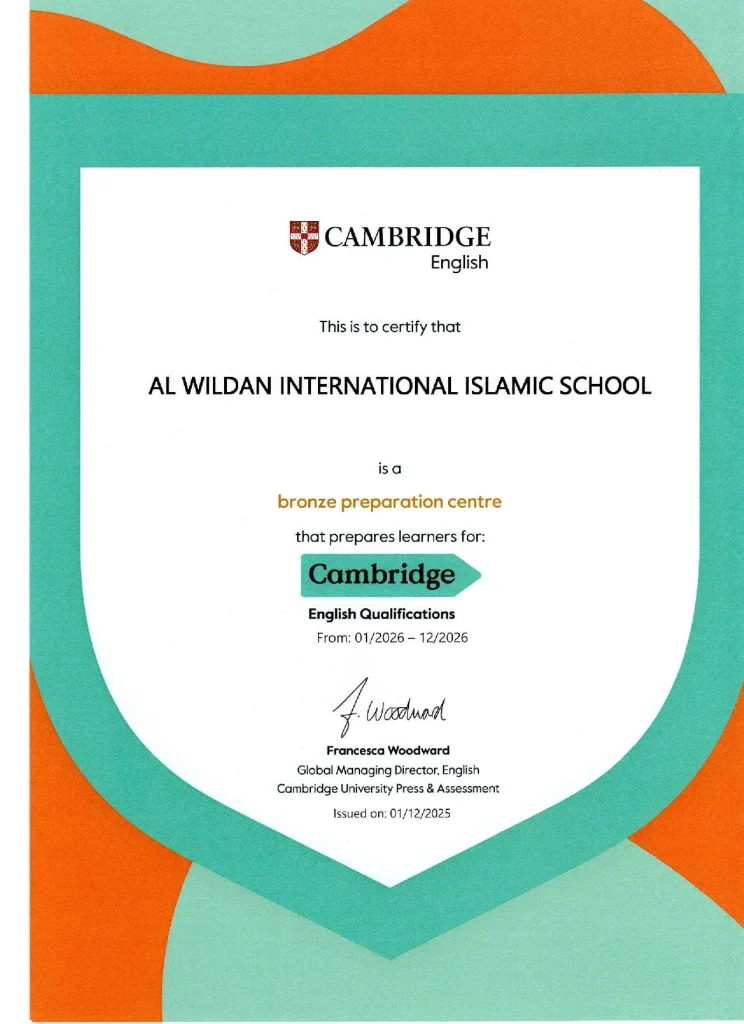 AL-WILDAN ISLAMIC SCHOOL secara resmi telah terakreditasi sebagai Cambridge English Bronze Preparation Centre di bawah naungan Cambridge University Press & Assessment. Pencapaian ini menandai langkah strategis sekolah dalam memperkuat mutu pendidikan bahasa Inggris berstandar internasional.