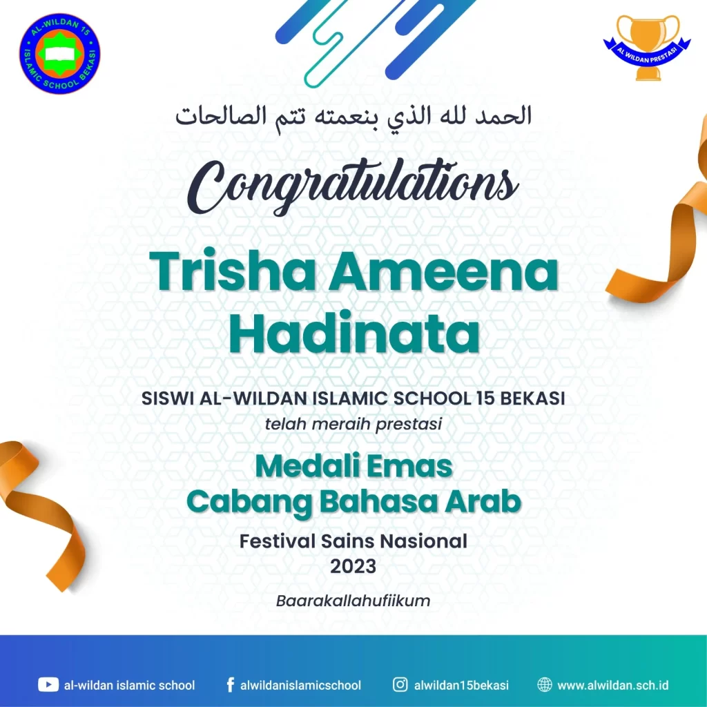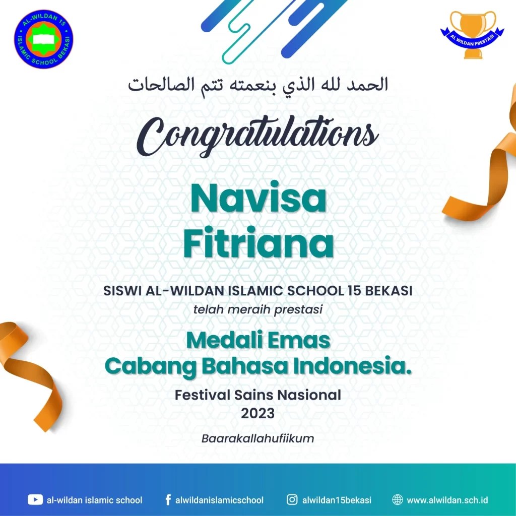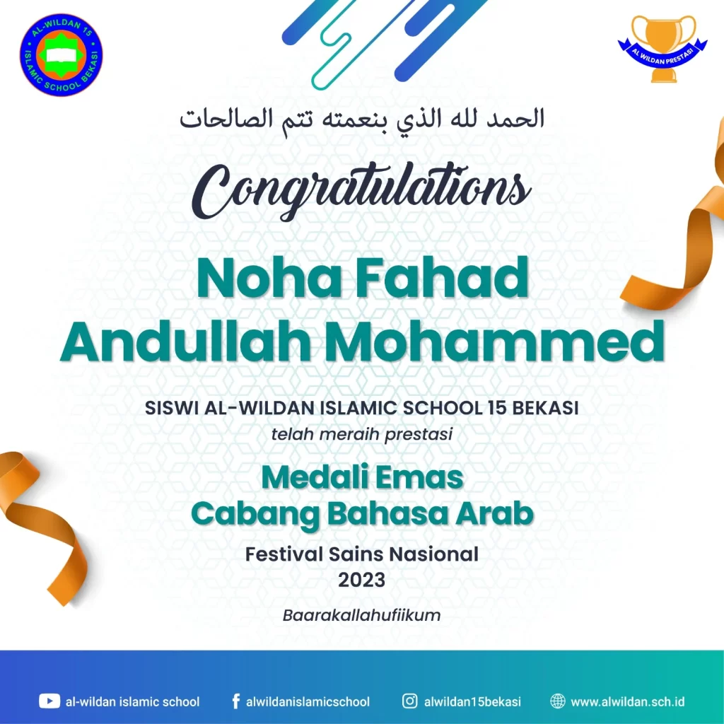 AL-WILDAN ISLAMIC SCHOOL 15 Bekasi meraih pencapaian luar biasa dalam Festival Sains Nasional 2023. Dalam kategori Bahasa Arab dan Bahasa Indonesia, AL-WILDAN ISLAMIC SCHOOL 15 Bekasi berhasil mencatat sejarah dengan prestasi gemilang yang membanggakan.