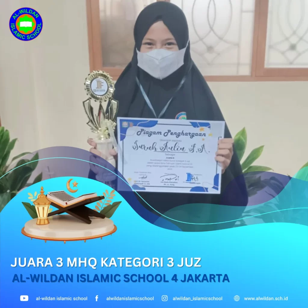 Assalamu’alaikum, Masyaallah Tabarakallah, berita menggembirakan datang dari Sarah Aulia siswi AL-WILDAN ISLAMIC SCHOOL 12 BEKASI, dalam kompetisi MHQ (Musabaqah Hifzil