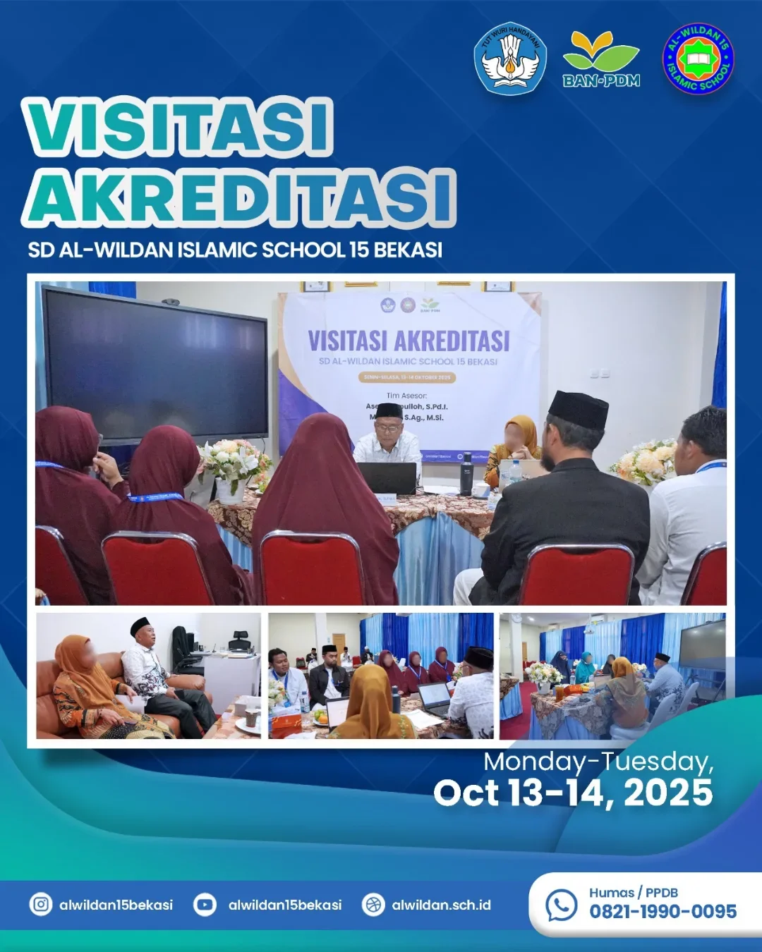 Selama proses akreditasi berlangsung, seluruh tim SD AL-WILDAN ISLAMIC SCHOOL 15 Bekasi berikhtiar maksimal dalam menampilkan berbagai aspek terbaik sekolah, mulai dari administrasi, manajemen sekolah, proses pembelajaran, hingga kegiatan yang menjadi ciri khas AL-WILDAN.
